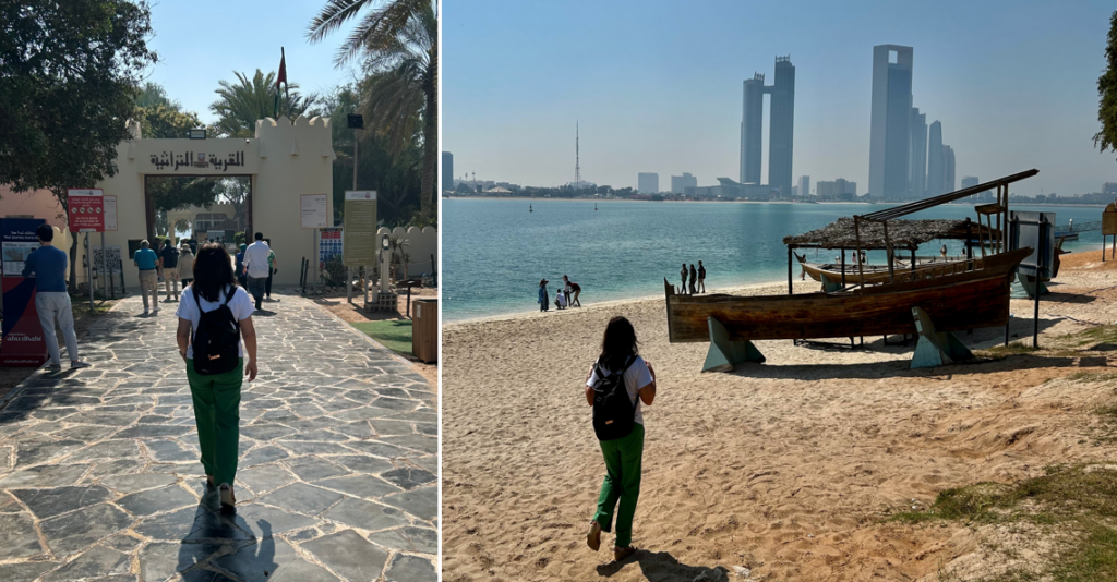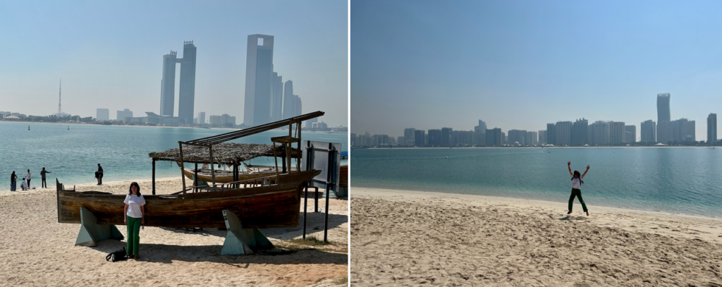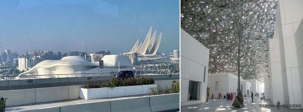 Pasamos parte de la tarde en la isla de Saadiyat, una de las zonas más ricas de Abu Dhabi gracias a sus propiedades de lujo, playas exclusivas y su distrito cultural donde se encuentran El Louvre Abu Dhabi y el Museo Nacional Zayed: