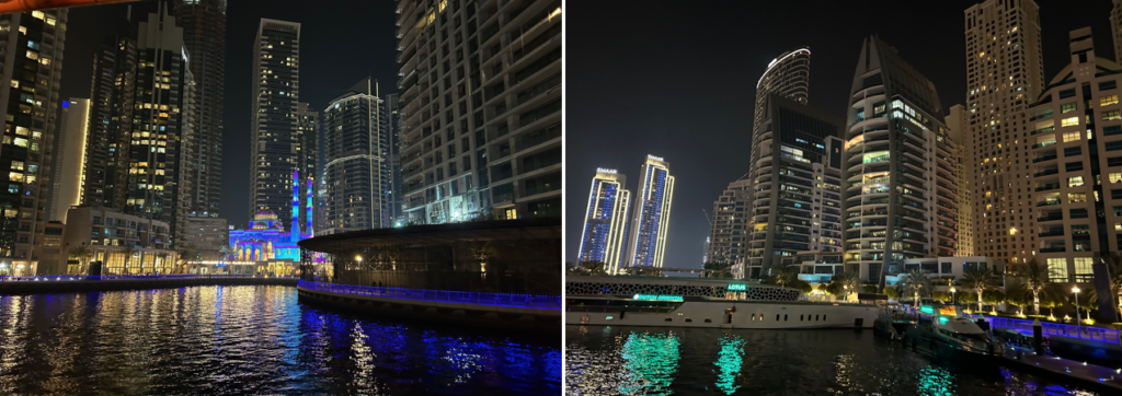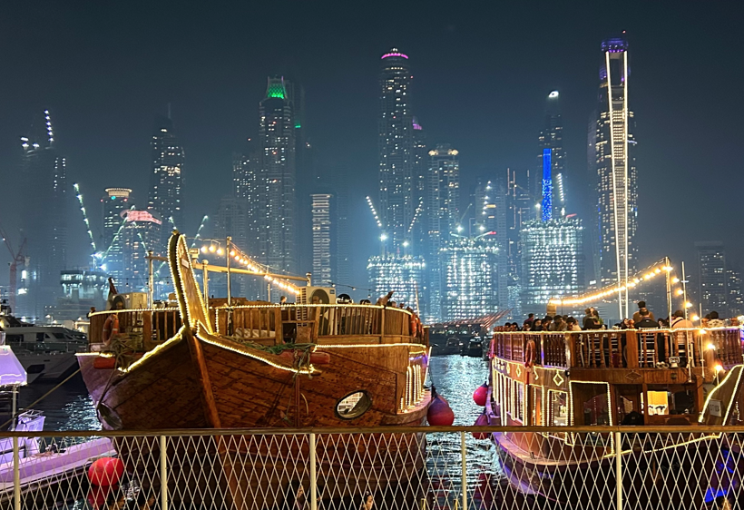 A la hora convenida salimos en busca de nuestra primera experiencia en Dubái, un paseo por la Marina de dos horas de duración a bordo de un Dhow, donde también disfrutaríamos de una cena y un espectáculo.