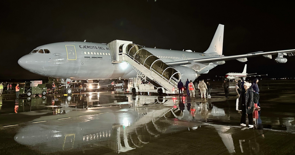 La mañana siguiente fue de tramites y espera hasta que el avión del Ejército Español aterrizó y todos los compatriotas emocionados aplaudimos su llegada.